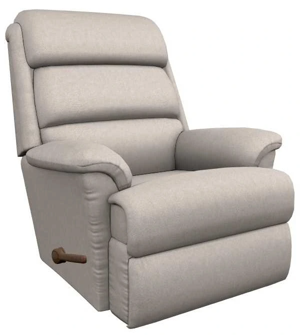 The tall pillow back features three separate cushions that can adjust to your body’s contours, while the chaise seat and padded flared arms provide the ultimate in comfort. Simply use the convenient handle on the outside arm to raise the leg rest for reading, relaxing or watching TV. When you’re not reclining, it’s a relaxing rocker with a smooth, graceful motion.