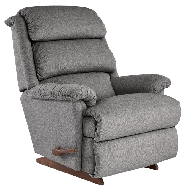 The tall pillow back features three separate cushions that can adjust to your body’s contours, while the chaise seat and padded flared arms provide the ultimate in comfort. Simply use the convenient handle on the outside arm to raise the leg rest for reading, relaxing or watching TV. When you’re not reclining, it’s a relaxing rocker with a smooth, graceful motion.